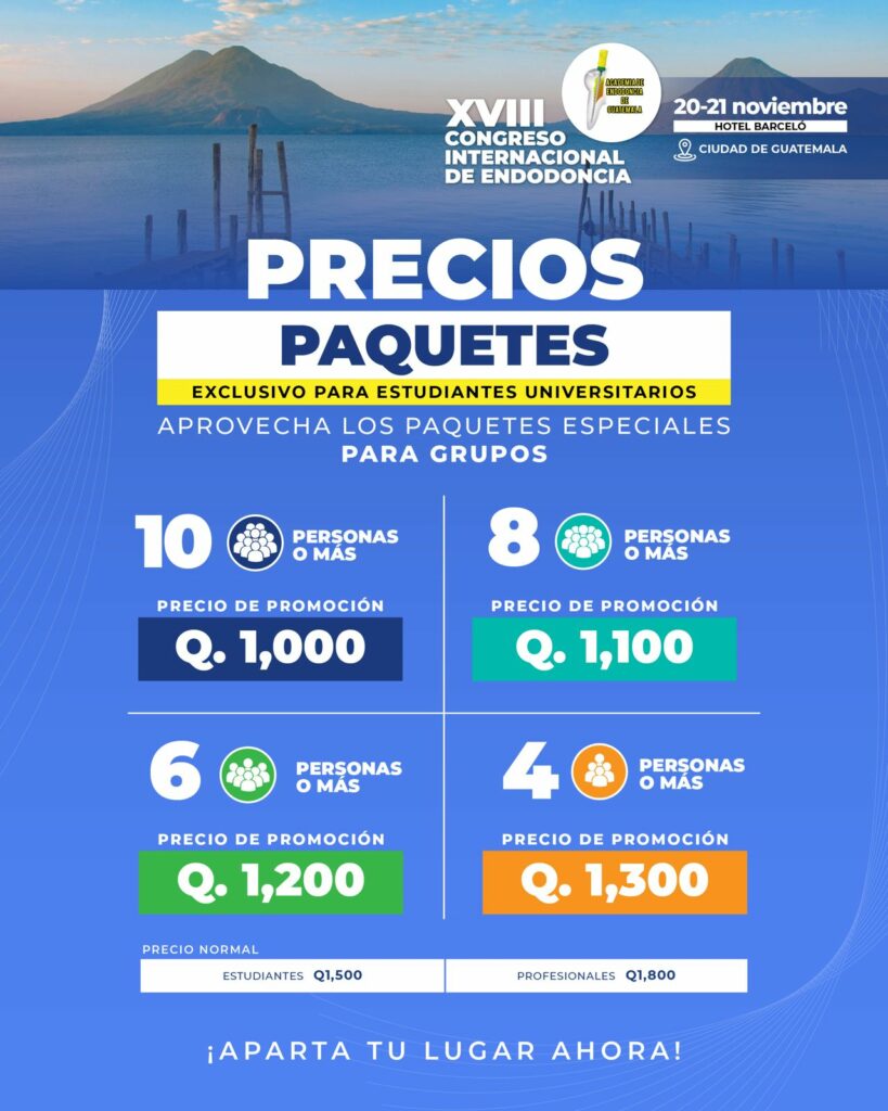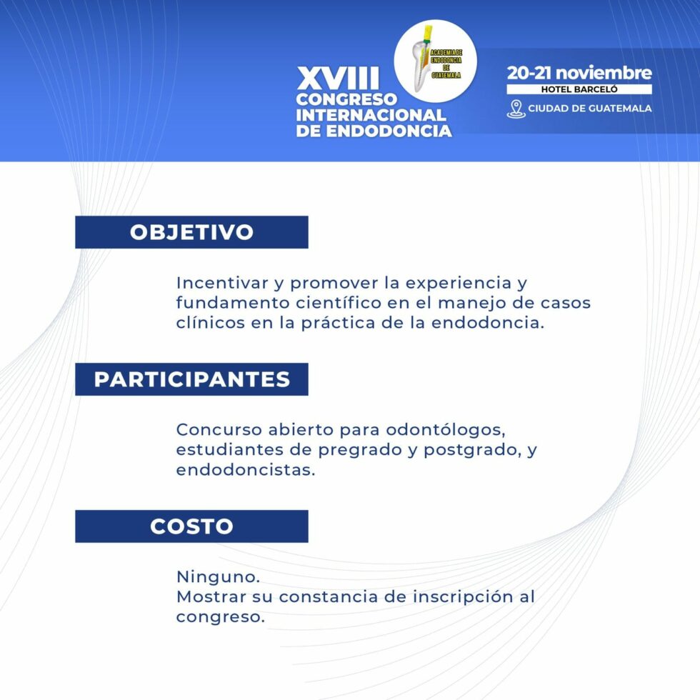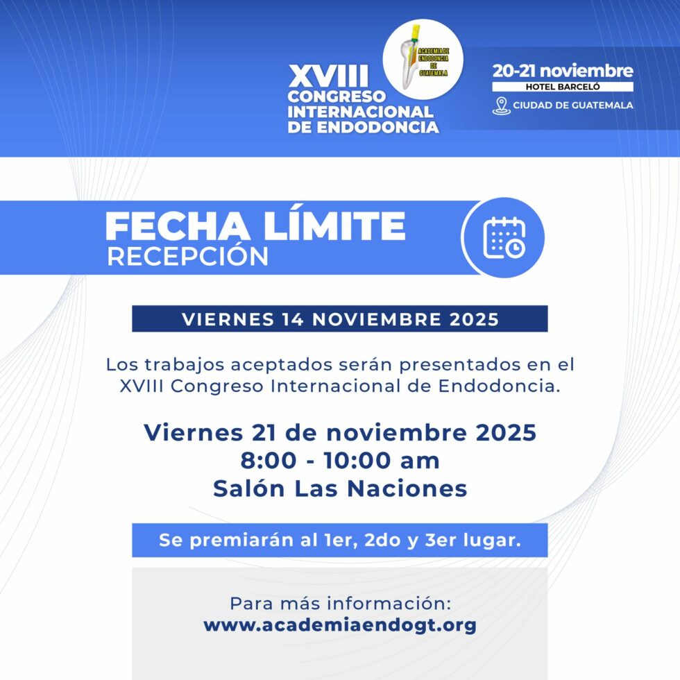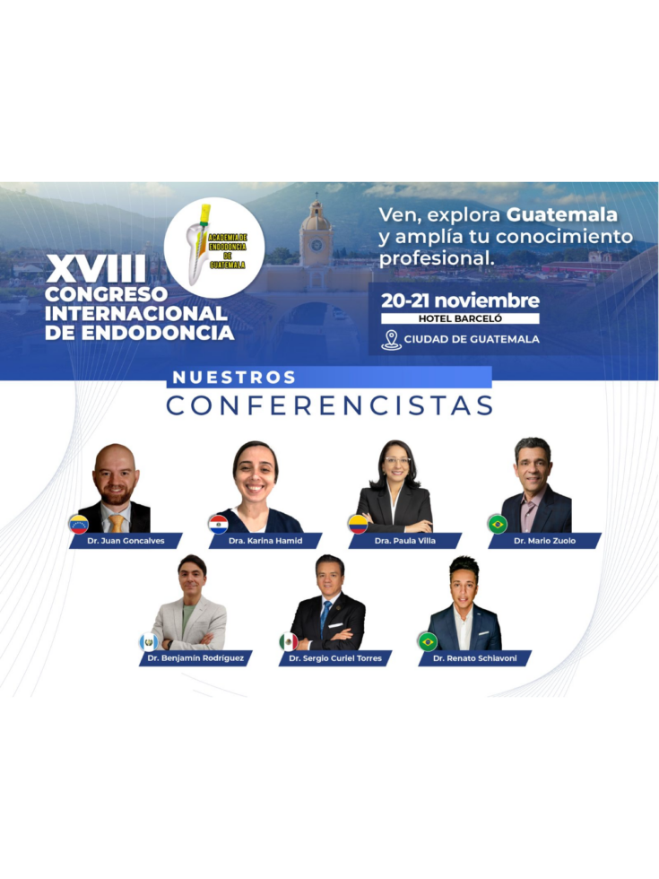 Hoy 13 años después, me honra estar al frente de esta asociación que representa a La Endodoncia de Guatemala y que se le ha permitido llevar a cabo durante las últimas dos décadas un Congreso Anual que como todo en la vida ha ido progresivamente creciendo, mejorando y siendo hoy un congreso con un prestigio internacional que nos llena de orgullo. Ha sido un trabajo de colegas y amigos que honro con estas palabras y que agradezco por su visión de formar este refugio de conocimiento como lo es la academia y nuestro Congreso Anual.